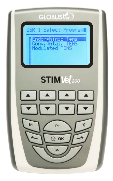 StimVet 200 is a device for muscular and analgesic electrostimulation for small animals and horses.