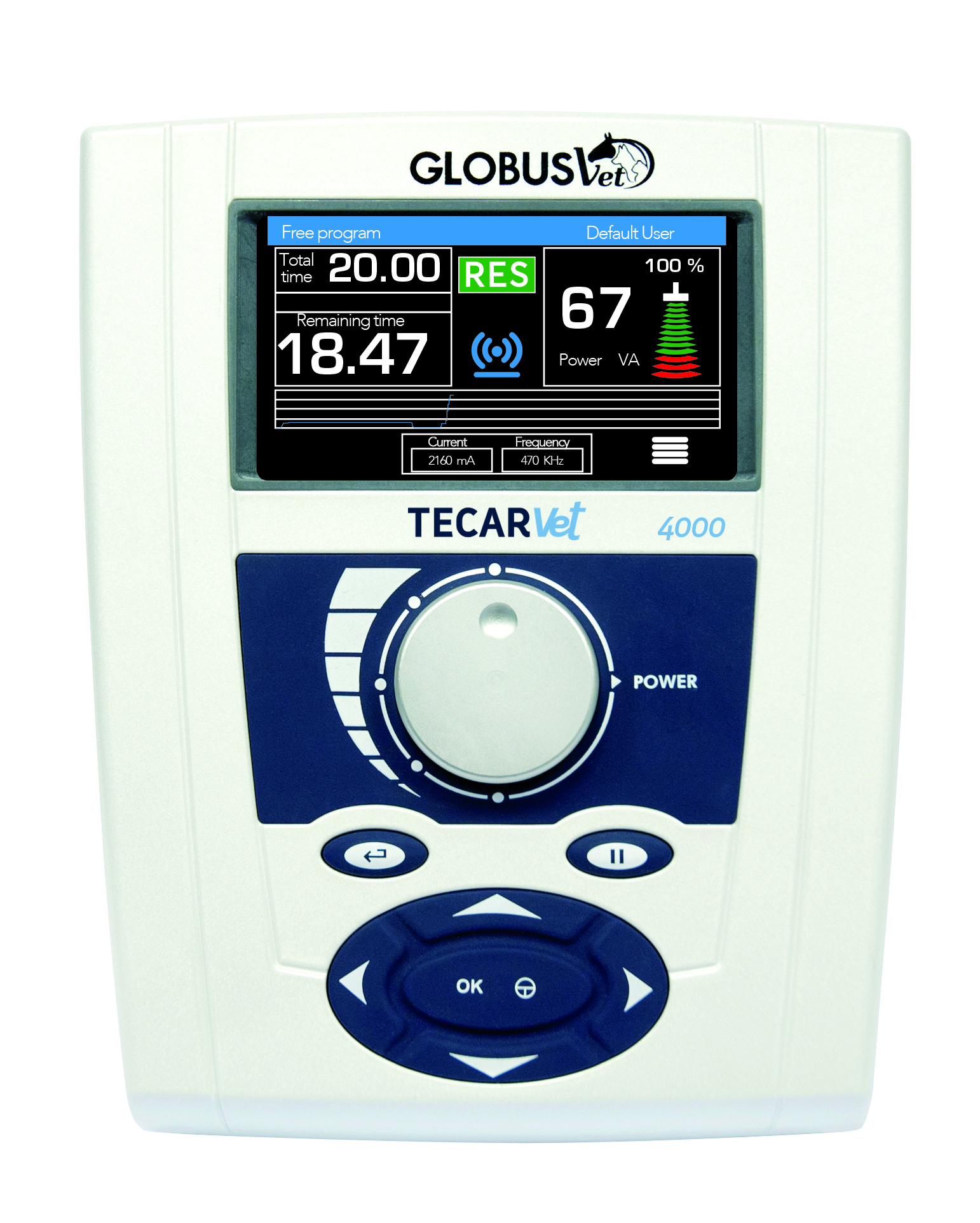 TecarVet 4000 works at a frequency of 470 KHz and with a maximum power of 160 W.